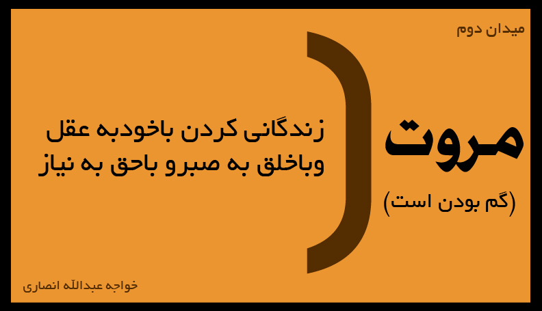 گم بودن است ودرخودزیستن.ارکان مروت سه چیزاست زندگانی کردن باخودبه عقل وباخلق به صبرو باحق به نیاز و نشان زندگانی کردن